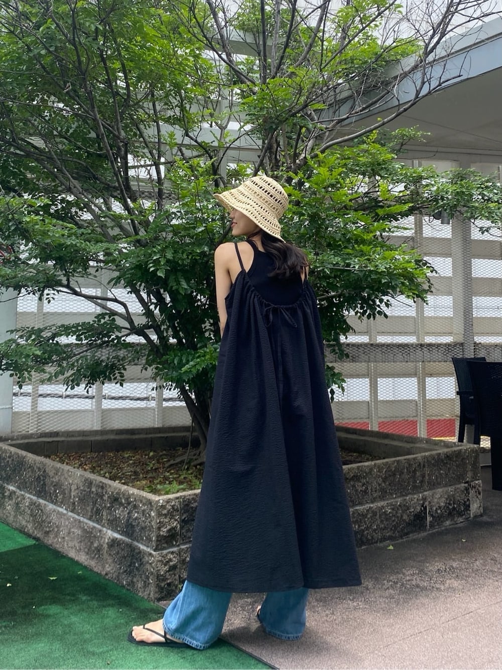 キャミワンピースを使った大人カジュアルコーディネート⭐︎【One-piece】毎年大人気のキャミワンピースが今年は生地感が柔らかくラフに着ていただけるアイテムです♪長さを調節することができ、中に合わせるインナーで雰囲気が変わるので色々な合わせ方で楽しんでいただけます!!【Tops】アメスリリブタンクトップはこれからのインナーとしても活躍間違いなしです!! フィット感があり、スッキリとしたシルエットで着ていただけます!【Shoes】去年も大人気だったサンダルが今年も発売!!細めのストラップが綺麗めなアイテムとも合わせやすく、おしゃれ見えしてくれます♡クッション性があるので疲れにくく、夏に活躍間違いなしです!!【Hat】透かし編みハットは、生地が柔らかく色味も合わせやすいので、レディなアイテムにもカジュアルなアイテムとも相性抜群です◎中の紐でサイズを調節できるため、自分にあった大きさで被っていただけます⭐︎