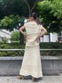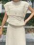 セットアップを使ったワントーン大人カジュアルコーデ⭐︎【Tops】様々な編み柄が可愛く、一枚でおしゃれ見えしてくれます♪一枚でももちろん、シアートップスとレイヤードして重ね着もおススメです!!肩周りをしっかり包んでくれるため、二の腕周りの心配もありません○【Skirt】裾にかけて徐々に広がるフレアスカートは、ボディラインを拾い過ぎまずすっきりとした印象で履いていただけます!裏地も膝上までついているため透け感も心配ありません!【Acc】ロングネックレスはコーディネートにプラスするだけでオシャレ見えに♪ゴールドは存在感があり、きれいめなアイテムとの相性抜群です⭐︎