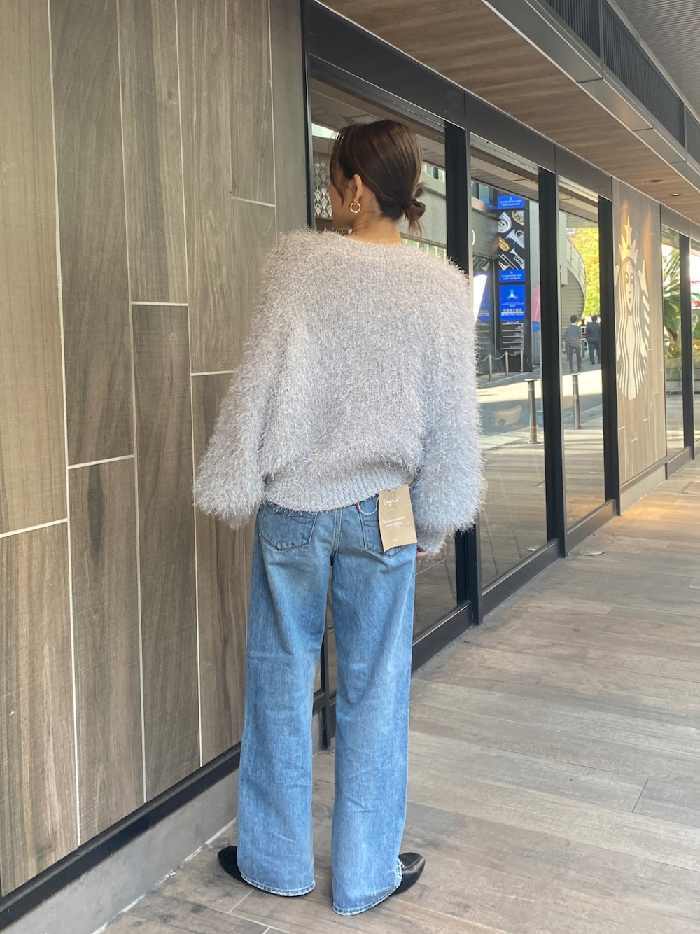 トレンドのラメニットを使った、デニムコーデ👖 ラメニットはボリューム感が可愛く ストンと落ちてくれるシルエットです🙆🏽♀️ 大人気のストレートデニムと合わせることですっきりとした印象に🌝