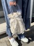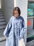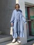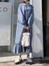 着心地の良いピーチ素材のロングワンピース。一見難しそうな色物も、可愛すぎないくすみブルーなら挑戦できそう!連なったリボンや裾のフリルがユニークでmerry jennyらしさ満点のデザインです。ふんわりとボリュームのある袖で、どこから見ても可愛いシルエット♡前ボタンを開けば軽い羽織としても使えるので、一枚あるとコーディネートの幅が広がりますね。