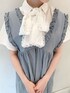店頭でも人気のワンピースを使ったガーリーコーデ。存在感のある爽やかなブルーのワンピースは、トップス次第でカジュアルにも、ガーリーにも着まわせる優秀さ。コットン素材で夏も涼しく着ることができます。ショルダー部分にはフリルが施され、顔まわりをぱっと華やかに!今回はボウタイブラウスを合わせてトレンド感をプラス!大きなボウタイリボンが目を惹くデザインですが、すっきりしたシャツ襟や袖のおかげで、甘すぎず、パンツスタイルやキャミワンピにも合わせやすい万能アイテムです。