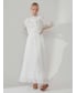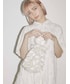 真っ白なガーゼがふんわりなびくロングワンピース。上半身が大きく開いたデザインなので、トップス次第でさまざまなコーディネートを楽しめます。ウエストマークで低身長さんでも重心が高く見え、綺麗なシルエットです。バックにもさりげなくリボンが付いていて、どこから見ても可愛いデザイン!今回は、並んだ仔猫が愛らしい、店頭でも大人気のTシャツと合わせてみました♡ガーリーすぎず、大人メリーさんにおすすめのスタイリングです。