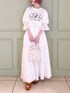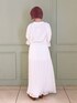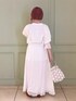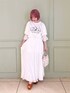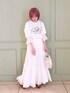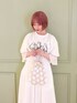真っ白なガーゼがふんわりなびくロングワンピース。上半身が大きく開いたデザインなので、トップス次第でさまざまなコーディネートを楽しめます。ウエストマークで低身長さんでも重心が高く見え、綺麗なシルエットです。バックにもさりげなくリボンが付いていて、どこから見ても可愛いデザイン!今回は、並んだ仔猫が愛らしい、店頭でも大人気のTシャツと合わせてみました♡ガーリーすぎず、大人メリーさんにおすすめのスタイリングです。