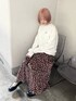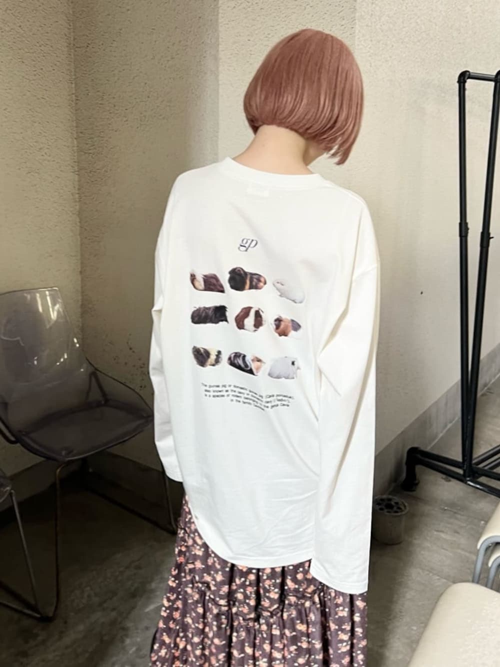 guinea pig(モルモット)いっぱいのユニークなカットソー。涼しくなってきた秋口には、着回しのきくロンTがマスト!カジュアルにもガーリーにも着られるオーバーサイズのロンT、今年は個性派デザインをgetしてみてください♡ スカートはベロア素材で艶感があり、一気に季節感を足してくれるアイテム。落ち着いたカラーなので総柄でも可愛らしすぎず、大人っぽく着られます。深みのあるブラウンは、アウターやニットカーディガンとの相性も抜群です。