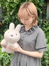 今年も大人気のくるくるワンピースを使ったモノトーンコーデ。名前の通り、襟についたくるくるのテープリボンがポイントです。体型を拾わないゆったりとしたシルエットも嬉しいですね。裾には大きなフリルが付いているので、ふんわり自然に広がります。高身長さんはレースパンツなどを重ねて着るのもおすすめ。私は厚底のシューズを合わせてバランス良く見えるようにしました。可愛いうさぎさんには、お財布、スマホ、リップなど…意外と入りますよ♡もちろんお家で癒されるのも良いですね!
