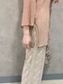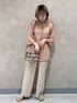 ワントーンで合わせた大人なコーディネート。トレンド感あるシアートップスは今季のマストアイテム!ゆるっとしたハーフスリーブで涼しく、着心地も◎どことなく秋を感じるくすんだカラーが可愛いです。配色のメロウがコーデのアクセントになってくれます。薄手なので、キャミワンピやジャンスカと一緒に着てもごわつかず、着回し力◎また、サイドのスリットから覗くレースパンツもおすすめのアイテム。ワイドなシルエットですが、ラインが入っていることですっきりして見えます。総レースで柔らかい印象なので、パンツスタイルに挑戦してみたい方におすすめです。