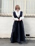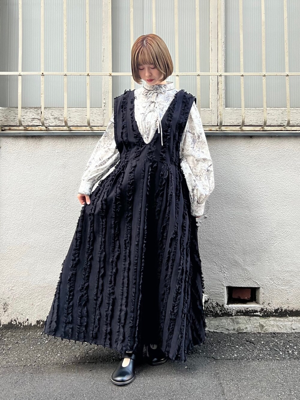 シックなオリエンタル柄と、繊細なレースやリボンの組み合わせが唯一無二なブラウス。すっきり大人な印象にしてくれるスタンドネックと、ふわりと広がるスリーブのバランスが◎ジャンスカは、立体感のあるシャギー素材がユニークで可愛いです。トップス次第でシーズン問わず着回せる万能アイテム♡大人メリーさんは、モノトーンでまとめるのがおすすめです。
