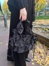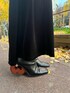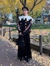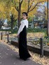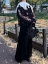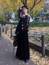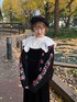 冬らしいつややかなベロアのワンピースを、ガーリーにコーディネート。クロシェカーディガンのお花を差し色に、モノトーンでまとめました。ワンピースはロング丈で落ち感があるため、低身長さんはヒールを履くのがオススメです。今回は、ちらっと覗くハート型ヒールで遊び心をプラス。アクセ使いでこだわりを詰め込んだ、冬のお出かけコーデです。