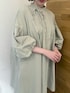 ふんわりバルーンスリーブが大人可愛いミニワンピ。一枚で着ても、ボトム合わせでチュニック風に着ても◎で、さまざまな着こなしを楽しめます。首元にちょこんと付いたリボンがアクセントに。ギャザーを寄せて上半身すっきり、後ろ姿もふわっと動きのあるデザインです。ネックは詰まり過ぎておらず、身幅にもゆとりがあるため着心地楽ちん。軽やかなカラーパンツとシューズを合わせて、春らしいコーデに。