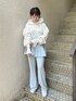 sumomo(merry jenny)のカーディガン/ボレロ「フリルショートサーマルフーディー」を使ったコーディネート