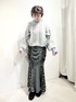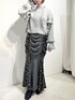 (カーディガン) スリーブ部分のフリルがポイント!透かし編みになっていてシンプルすぎないのも◎どんな身長の方でも可愛く着こなせる丈感です。厚手すぎないのでこの上にアウターを着るのも楽ちん! (トップス) トレンドのフレアスリーブ♡伸縮性抜群で楽な着心地です。 (スカート)着るだけで細見えするマーメイドシルエット。ギャザーを寄せてあるので窮屈感なく履いていただけます。下着のラインが出にくいのも嬉しいポイント。 (シューズ)フラットシューズで大人かわいいスタイリングにぴったり。透け感があり、ブラックでも重たく見えません。
