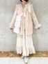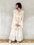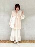 (ワンピース)エアリーなシアー素材が可愛いワンピース。セーラー襟に抵抗がある方も着やすい、少し大人なデザインです。さりげないチェックとお花がmerry jennyらしいガーリーさ♡秋冬はタートルやベストなどで重ね着を楽しむのがおすすめです。 (ベスト)今季トレンドのフェイクファーベスト。カジュアルにも、ガーリーにも着られるようにリボンが取り外しできます。何かと便利なポケット付き。ふわふわと柔らかなプードルファーと、淡いピンクがかったカラーが可愛らしい印象です。 (シューズ)フラットシューズで大人かわいいスタイリングにぴったり。