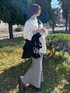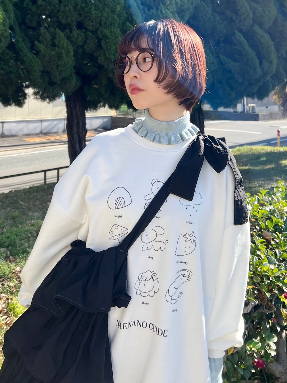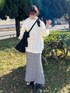 (スウェット)ゆるっと着られるサイズ感で普段使いにピッタリ。ボリュームのあるスリーブが女の子らしさを演出してくれます♡春秋冬とロングシーズン活躍します。 (ニット)鮮やかなブルーはコーデのワンポイントにぴったり!首元、手首からちらっと覗かせるとこなれ感up♡ (スカート)履くだけでメリハリのあるシルエットに。かなり伸縮性があり、締め付け感ゼロな着心地です。大人かわいいネイビーのチェックは、カジュアルなスウェットとの相性抜群。 (バッグ) ショルダーの長さを調節すれば、厚手のトップス上からでも楽々。大容量で通学通勤だけではなく旅行用にも人気です。 (シューズ)今季も注目のボリュームソール。見た目に反して軽い履き心地です。23.5cmでMサイズ着用です。