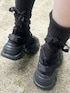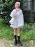 (トップス)ふわっとボリュームのあるチュールが目を惹くデザイン。カジュアルになりすぎない、淡いグレーが可愛いです。ボリュームのある袖で、肩幅が華奢に見えるのもポイント。チュールの透け感でボトムのデザインが映えるので、レイヤードを考えるのが楽しくなるアイテム ♡首元のジップを上げれば真冬も防寒ばっちり。 裏起毛ではないので、重ね着しても楽な着心地。春、秋、冬とたくさん着回せます✨ (スカート)トレンドのバルーンは、ふわっと気になる太ももやヒップをカバーしてくれて、細見え効果抜群! ウエストゴムで楽な履き心地です。 (バッグ)A4サイズもすっぽり入る大容量。肩紐にも綿が入っていて、重い荷物を入れても肩が痛くなりにくいです。 (シューズ)レースアップのリボンは取り外し可能な2way仕様✨ベルクロで着脱も楽ちんです。軽いソールで長時間履いても疲れにくく、たくさん歩くお出かけにおすすめ♡