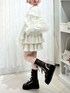 (カーディガン)ふわふわと柔らかな素材で着心地抜群のカーディガン。ややショート丈×長めのスリーブで、骨格問わずスタイルアップ効果抜群です。お揃いのつけ襟をつけることで顔周りが華やかに♡特にウェーブさんは一緒に着用することで肩のラインが綺麗に見えるので、おすすめです。 (スカート)ボリュームのあるティアードがヒップや太もも周りをふんわりカバーしてくれて、美脚効果抜群!秋冬感のある素材もポイント。ウエストゴムで楽な履き心地です (シューズ)23.5cmでMサイズ着用です。