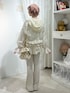 (ジャケット)この春一着は持っておきたい短丈ジャケット!フード部分までたっぷりレースを使っており、一気にコーデが春らしくなります♡軽い着心地でしわも気になりにくいので、持ち運びにもピッタリ。 (パンツ)ハリのある素材で、しっかりフレアに広がります♡脚長効果抜群でどんな体型でも盛れるパンツ♡伸縮性があり履き心地が良いので、デイリーに使えます。 (シューズ)23.5cmでMサイズ着用です。