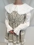 (ワンピース)そのまま着てもレイヤードしても使える、着回し力抜群のワンピース。ウエストも絞られるので、好きなシルエットで着られます。胸元のタックや肩のフリルで立体感が出て、ふんわり可愛いデザインです。長めの丈で、vintageのような雰囲気に。 (ブラウス)大きな襟とゆるいシルエットの、merry jenny定番ブラウス。今回は暖かくなってきても使いやすいぽこぽことした綿素材です。さりげないドット柄が他にないポイント♡オーバーサイズなので、羽織としても使えます。