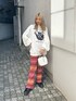 JOJOコラボ! 【トップス】JOJOストーンオーシャンのコラボプルオーバー!ユニセックスで着られるオーバーサイズ!161cmですっぽりお尻が隠れます。後ろも刺繍でデザインされていて可愛いです! 【ボトムス】ニット生地で肌触りの良いパンツです!チクチクもしないので、履きやすいです。ウエストは紐も入っているので調節可能。インナーパンツも付いているので安心です!