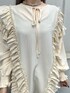 大人デートコーデ! 【トップス】フリルが可愛いトップス!サラッとした生地で、ホワイトは少し透け感があります!161cmでお尻が隠れる丈感で、ワンピース風×ロングブーツ合わせがおすすめ❤️ 【ボトムス】jouetie定番のフリンジデニムショートパンツ!オーバーサイズのトップスに合わせて、フリンジ見せするためMサイズ着用。チラッと見えるフリンジがとても可愛いです! ウエストはベルトループがついているので調節可能!サイズを上げても着られます。