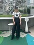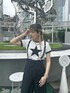 大人モノトーンコーデ⭐️ 【トップス】クロップド丈のフィットめTシャツ!フロントの星とバッグのロゴがかわいい♡ 【ボトムス】ゆったりサイズのパンツ!サスペンダーは取り外し可能です!ウエストもリボンで調節可能の優れもの!シルエットも綺麗でおすすめです!