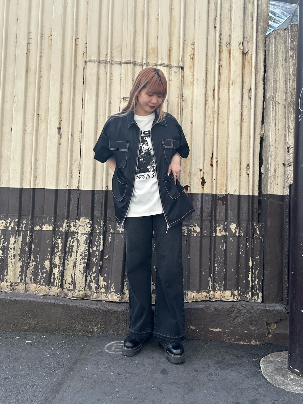 モノトーンな韓国ストリートコーデ✨ 【シャツ】ステッチが可愛いルーズなシャツ!一枚できても、羽織できても可愛いです♡ 【Tシャツ】袖にチュールが引っ付いたオーバーTシャツ!ロックテイストなプリント✖️チュールデザインで、簡単に甘辛コーデができます◎ 【ボトムス】161cmでSサイズ着用。ルーズなデニムです。ロールアップしても可愛く着られます!