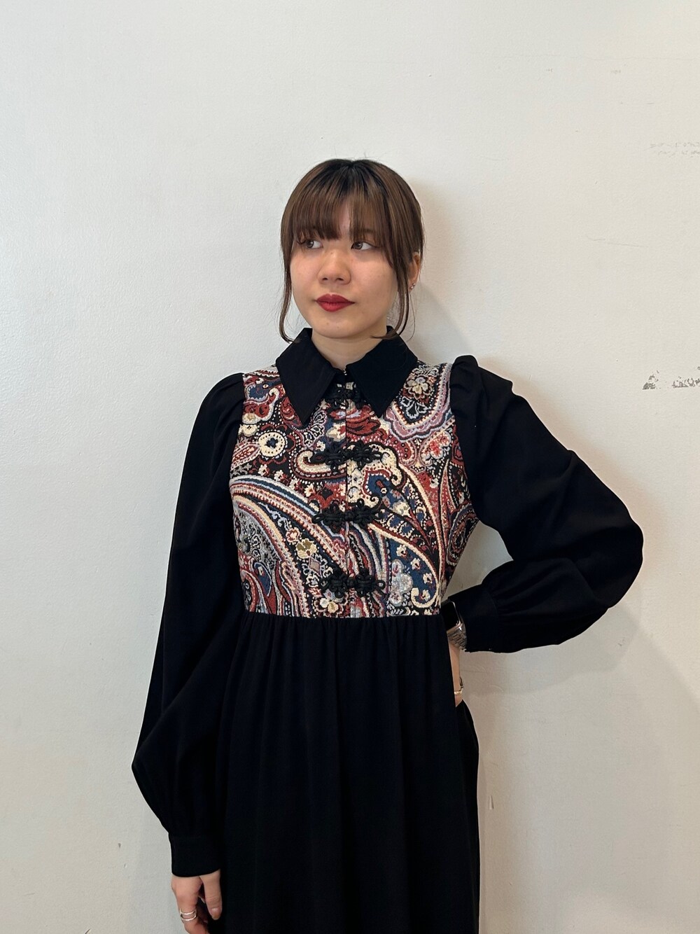 大人気のゴブランワンピ⭐️ 【ワンピース】一枚で大人カッコよく着られるワンピース!ゴブランのデザインはもちろん、フロントのチャイナボタンも可愛い◎後ろジップなので、楽ちんに着られます!