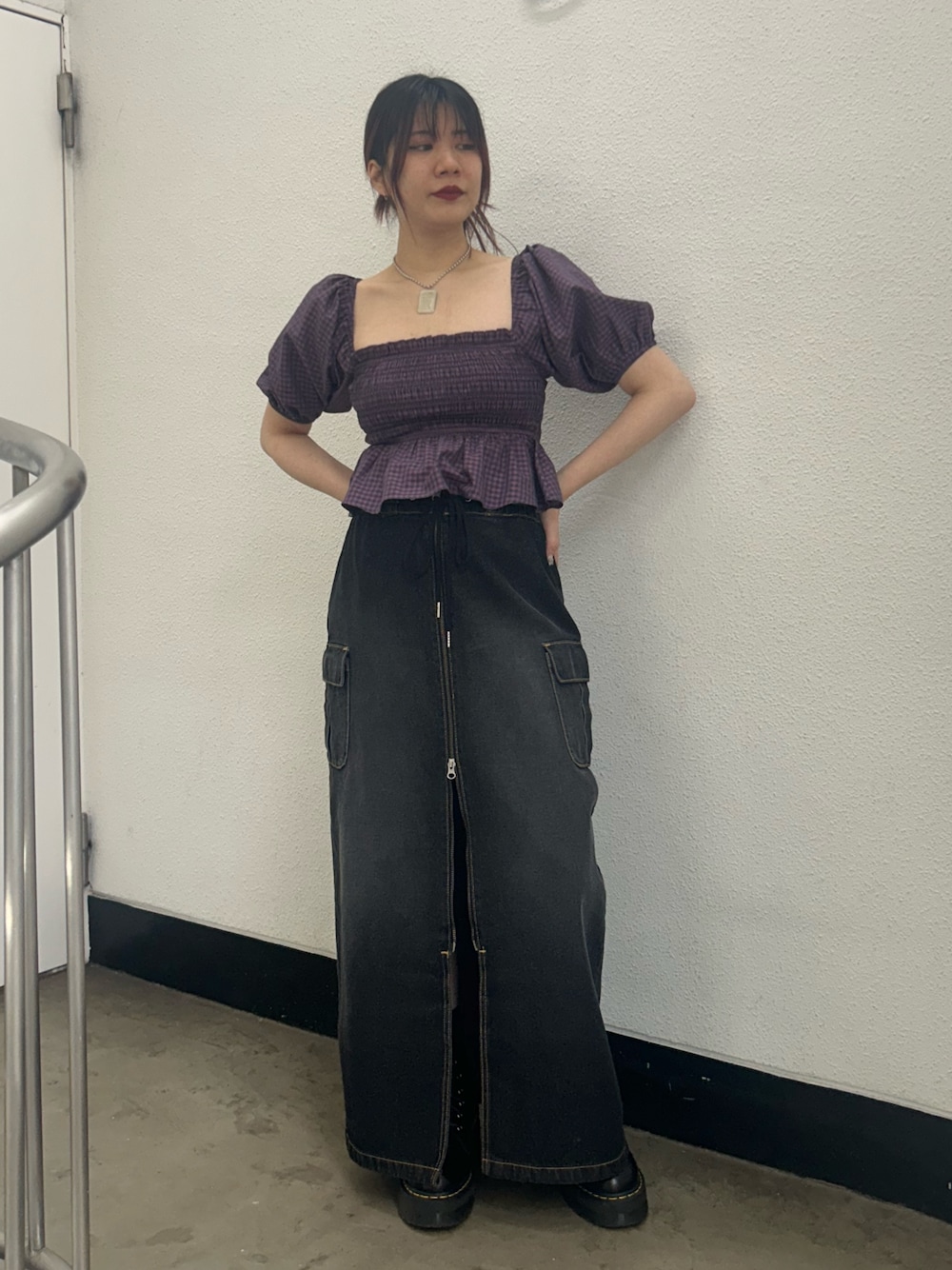 大人カジュアルコーデ⭐️ 【ブラウス】ボリューム感がかわいいブラウス!中にTシャツレイヤードしても可愛いです! 【スカート】161cmMサイズ着用。スリット具合が調節可能の可愛いスカート!カーゴっぽいデザインがかわいい!