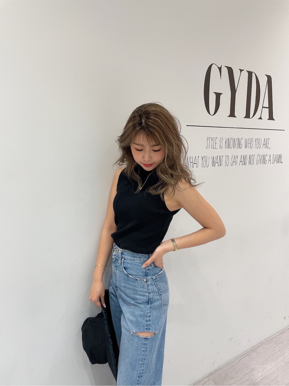 aika(GYDA)のニット/セーター「ノースリーブニットタンク」を使ったコーディネート