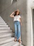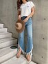 大人気商品を詰め込んだスタイルアップコーデ♡インパクトのあるフリンジデニムは綿で出来ており、しっかりとした硬さがあるデニムは履けば履くほど身体に馴染みヴィンテージ感を楽しめます。歩くと足首が見え細見え効果もあります。ハイウエストなのでショート丈のトップス合わせがオススメです◎Tシャツは毎年大人気なショート丈TシャツのNEWデザイン!貝殻にGOGO SHAWTYと書いたシェルワッペンが可愛くてポイント✨️" セクシーな女性 "という意味合いです。袖やお腹周りはゆとりがある為ストレスフリーな着心地です。デニムにデザインがあるためシンプルなトップスを合わせる事でまとまりが出てオシャレに見せてくれます!