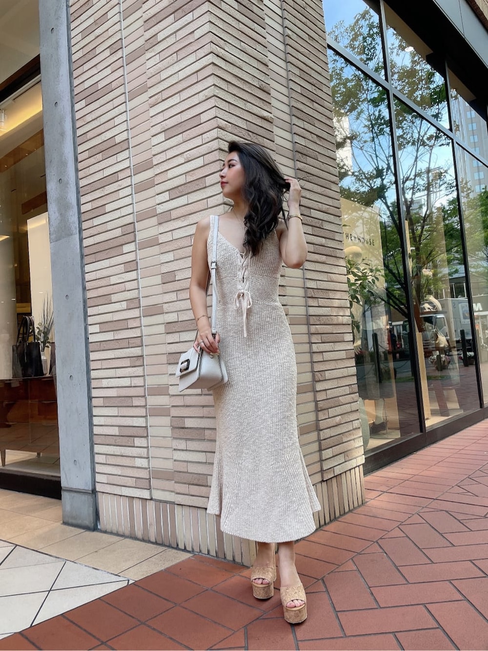 aika(GYDA)のワンピース「2WAYレースアップスラブニットワンピース」を使ったコーディネート