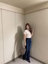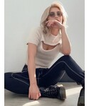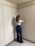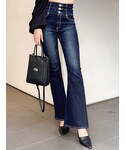 大人っぽカジュアルコーデ♡胸元の開いているデザインがGYDA(ジェイダ)らしくセクシーなシャギーニットトップス。ふんわりとしたシャギーニットがより女性らしい印象なアイテムです。タイトすぎず程よいシルエットで着膨れも解消できる1枚です。ボトムスはスキニー合わせはもちろん、フレアパンツでスタイルアップなコーディネートにもなります。デニムはGYDAで大人気のハイウエストボタンスキニーデニムパンツのNEWモデルのフレアパンツです。太ももはピッタリとしていて裾にかけてフレアになっているため美脚効果抜群な1本です!