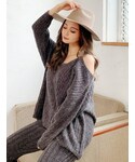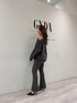 大人っぽSETUP❤︎トップスはVネックになっており肩が見えるデザインなので抜け感があり大人っぽい印象に✨️しっかりとした生地感なのでパンツの下着ラインなども気にせず着用していただけます。158cmで床にスりませんでした!