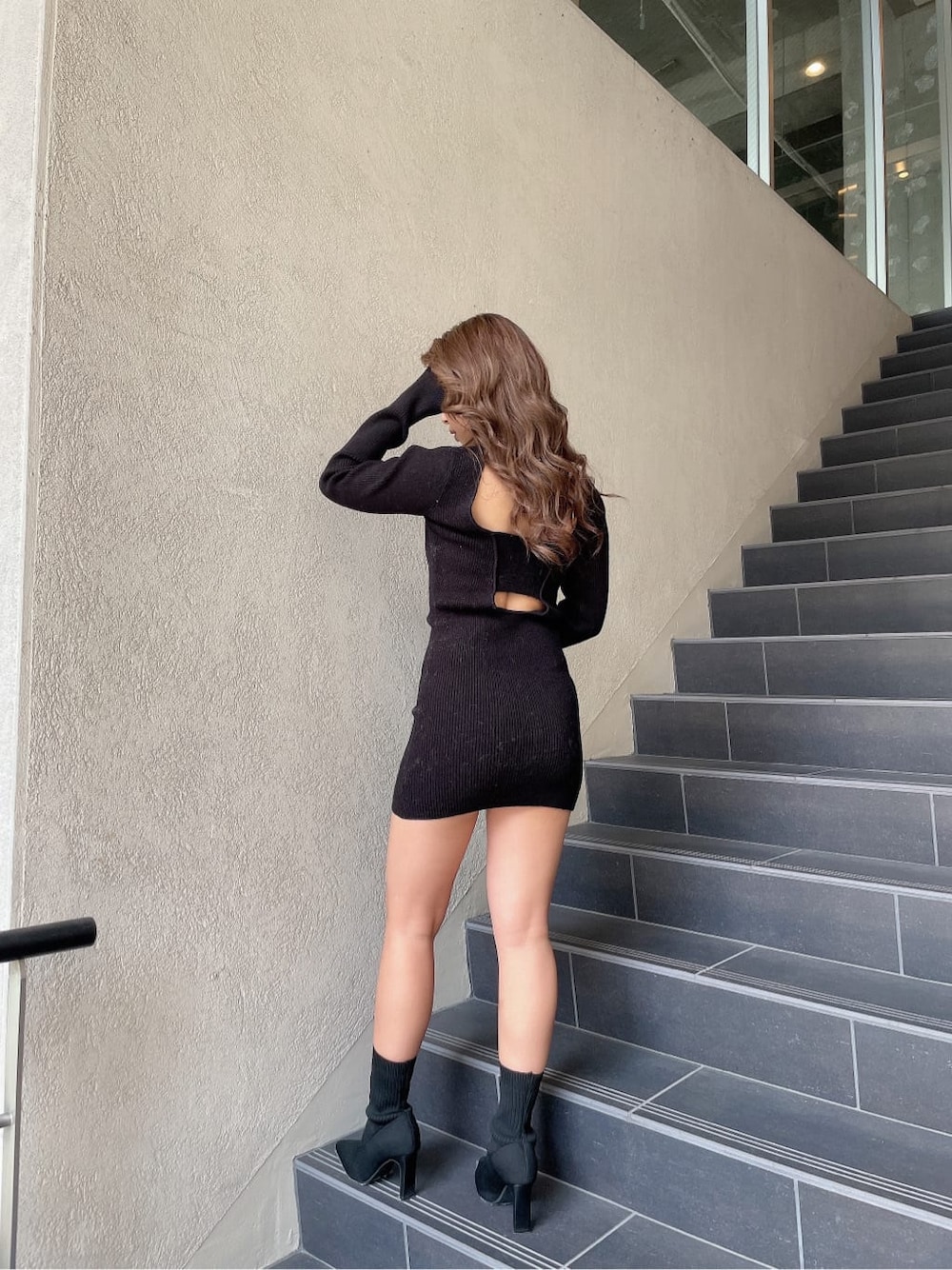 綺麗めワンピースコーデ❤︎バックスタイルがビスチェを着ているようなレイヤー風のデザインになっておりアンダーウェアも見えない位置になっています!フロントがシンプルなのでカジュアルなアウターでもキレイめなアウターでも相性がいいです✨️生地は少し分厚めのリブ素材でしっかりしている為、インナーの透け感などは気になりませんでした!