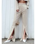 カッコイイSETUPコーデ✨️(SETUP)ストレッチの効いたポンチ素材が仕様されており着心地抜群のアイテムです♡ジャケットはショート丈なのでハイウエスト合わせがマスト!パンツはハイウエストの作りになっており158cmの私はぺたんこ靴でも裾が下にすらない丈感でした◎前のスリットがある事で細見え効果抜群です!(INNER)ビスチェはウエストのデザインがGYDAらしく肩紐が細めなので華奢でセクシーな印象に、、♡パットも厚手の物が使用されているので1枚でも安心して着用して頂けます。(SHOES)通年大活躍のポインテッドミュール!ピンヒールですが中には低反発のクッションが入っており、ヒールの根元は太くなっているため安定感抜群です。