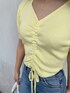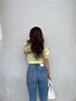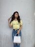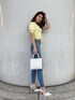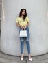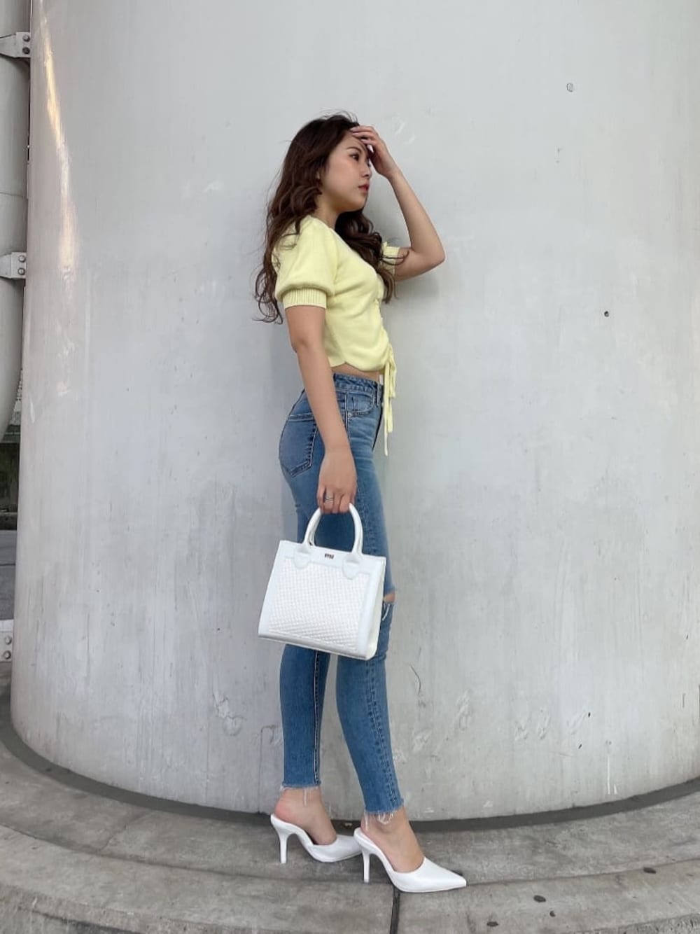 春カラーコーデ❤︎【TOPS】トレンドのフロントシャーリングデザインのニットトップスです。紐を絞れば短くする事も可能です✨️ギャザーがお腹周りをカバーしてくれるのでデザインも可愛く体型カバーできる優秀アイテムです♡私は春っぽいイエローを選びましたがカラー物のアウターなどお持ちでしたら白、黒などもおすすめです。【DENIM】SHAPELYスキニーデニムパンツの両膝にダメージをデザインしたアイテムです。膝ダメージの位置が少し上にあるため脚長効果抜群です!【ミュール】通年大活躍のポインテッドミュール!ピンヒールですが中には低反発のクッションが入っており、ヒールの根元は太くなっているため安定感抜群です。