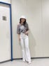 カジュアルコーデ【Tシャツ】人気のCUTデザインTシャツが今年はゆったりとしたシルエットのBODYになり登場しました✨️隠れbunnyのアートが可愛いポイントです♡ 【DENIM】美脚効果抜群デニム!センターラインが入っているため縦長に見せてくれ更にハイウエストデザインな為美脚効果が凄いんです✨️シンプルなデザインなのでコーデに取り入れやすく着回しも抜群です。【サンダル】スクエアクッションサンダル✨️クッションスポンジのような履き心地でヒールは9cmと低めなのでどんなシーンでも使って頂きやすいアイテムです。クッションの厚みがあるため横幅が広めな方はワンサイズアップがオススメです!【バケットハット】gydaロゴが入っている夏らしいフリンジバケットハットが登場しました!カジュアルなデザインですがあえてキレイめなワンピースに合わせてGYDAらしく綺麗めカジュアルなコーデがオススメです✨️
