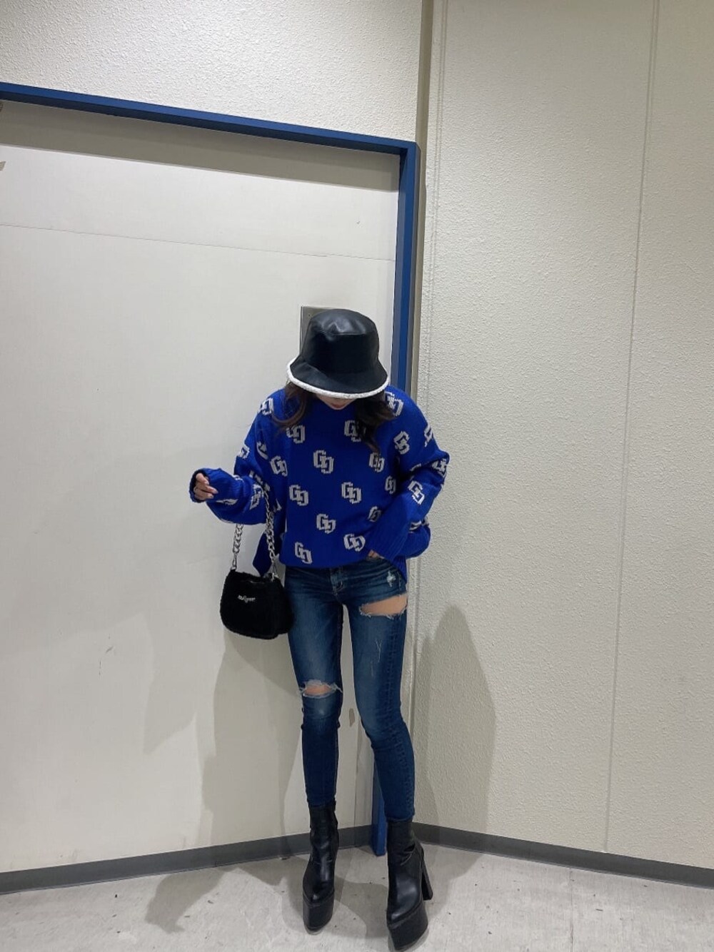 暖かコーデ❤︎【ニット】去年爆発的大人気だったロゴニットから今季はGGロゴになり登場しました✨️サイドのポケット付きや、厚みのある一枚でインパクトあるゆったりしたサイズ感が可愛いitemです!店舗限定カラーでブルーとピンクがございます。【デニム】大人気のSIDERIPPEDシリーズのM/W(ミドルウエスト)バージョンです。短いトップスと相性抜群なので大活躍間違いなしのGYDAらしいセクシーなデニムです。【ブーツ】一昨年大人気だったバルキーショートブーツ。前後差がなく12.5cmを履いてるとは思えない様な履き心地です。横幅が小さいので幅が広めな方はいつもよりワンサイズ上がおすすめです。【バッグ】冬仕様のボアミニバックです。チェーンと太めのショルダー紐の2wayでお使い頂ける仕様となっております。【バケハ】ボア、レザーと裏表2wayでお使い頂ける優秀アイテムです。