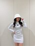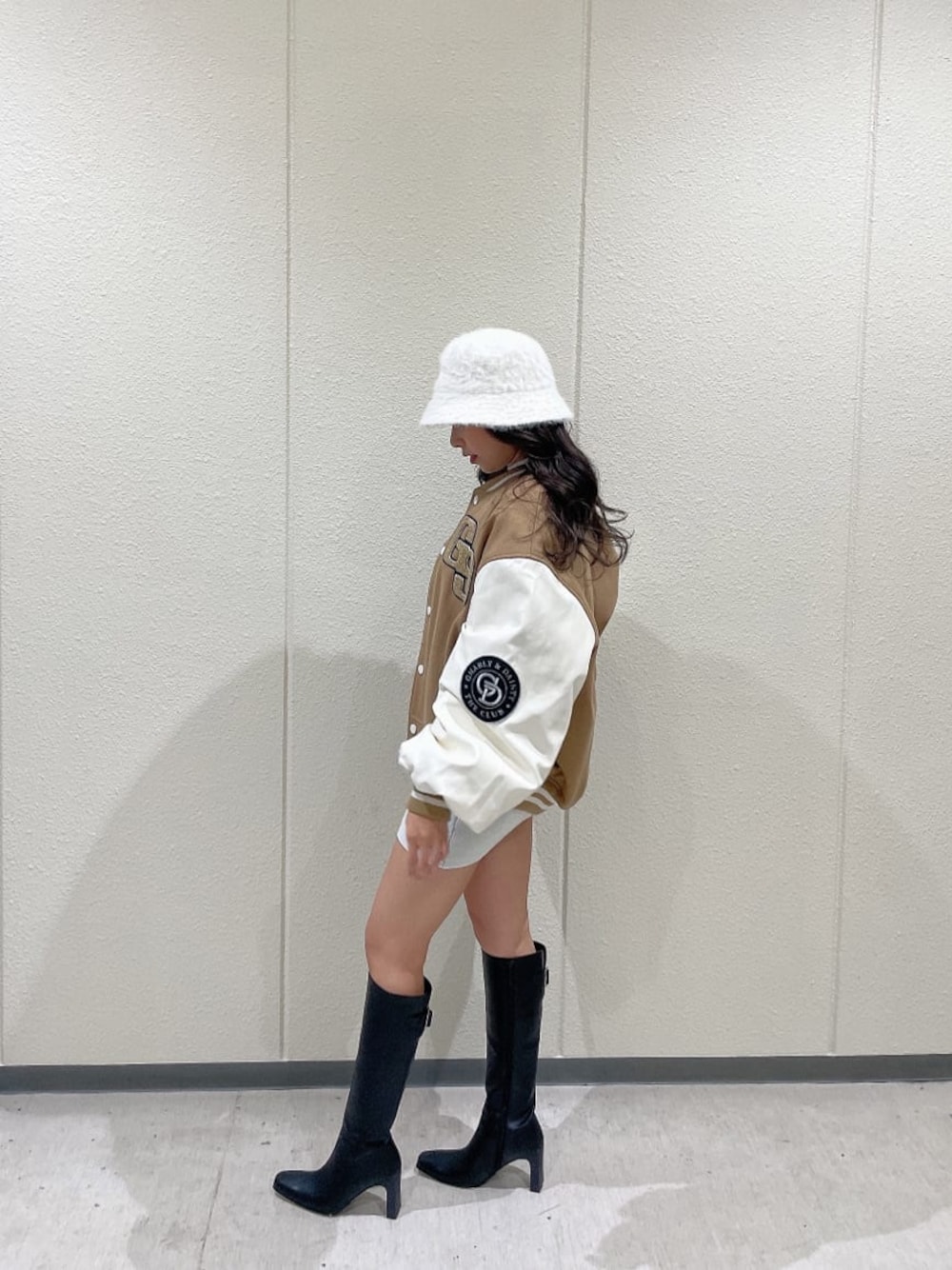 今年トレンドのスタジャンコーデ❤︎ 【ワンピース】モチっとした厚手の素材でお下着の透け感などが気になりませんでした!主張し過ぎない胸元のワンポイントロゴが可愛く丈感も長めなので安心して着用して頂けます✨️【アウター】トレンドのスタジャンで袖部分まで中綿が入っているのでしっかり温かみもあります。大きめのシルエットになっているので中に着込んで頂いてもごわつきなく着用して頂けます。【ブーツ】定番BASICブーツのNEWモデルです。BACKのスリットベルトデザインが後ろ姿も可愛く見せてくれます♡