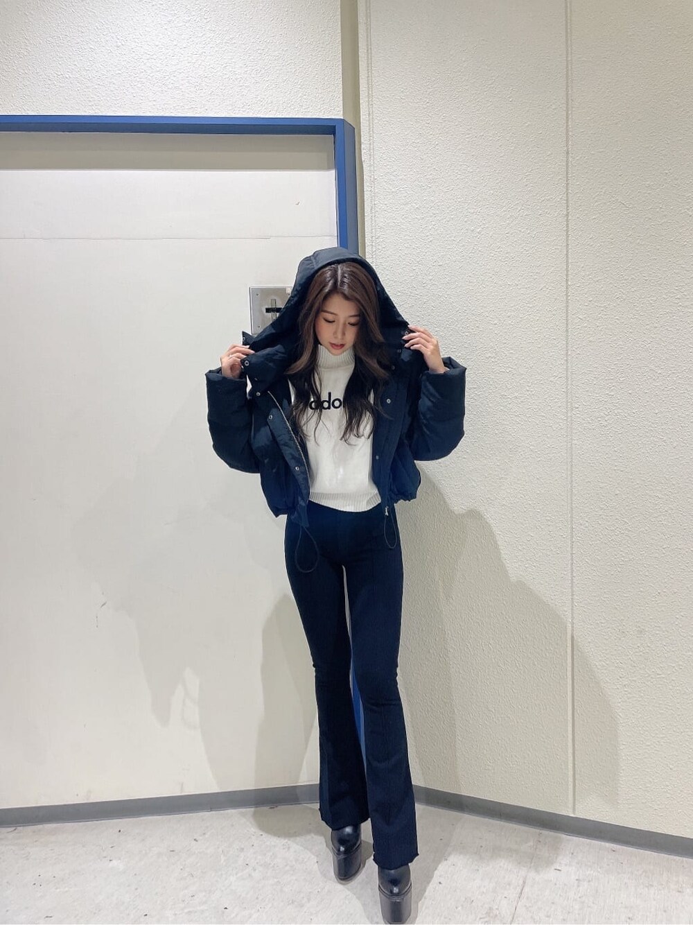 モノクロシンプルコーデ❤︎【トップス】毎年人気のボトルネックショートニットトップスで今季のロゴは"adorbs!"めちゃくちゃ可愛い、憧れるという意味です。薄手で程よいサイズ感が着やすく着回し抜群のアイテムです。【アウター】毎年大人気のショートダウンはダウン80%使用しているので真冬でも負けずの温かさです♡今年はお袖がファスナーで取れる仕様の2wayなので色々な着回しを楽しんでいただけます✨️【ボトムス】肌触りがいいスウェット素材で着心地のいい美シルエットのフレアパンツです。158cmの私でぺたんこ靴ギリギリいける丈感でした。【ブーツ】一昨年大人気だったバルキーショートブーツ。前後差がなく12.5cmを履いてるとは思えない様な履き心地です。横幅が小さいので幅が広めな方はいつもよりワンサイズ上がおすすめです。