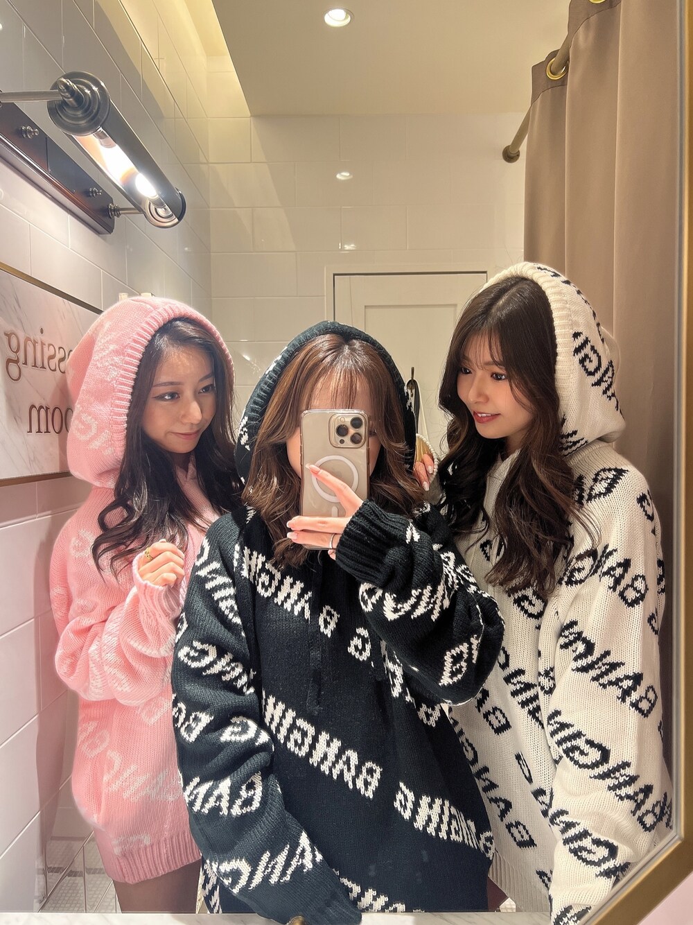 お揃いコーデ♡ 【トップス】大人気の総ロゴニットからフーディーのニットが登場しました✨️ゆったりとしたルーズなシルエットなので158cmの私でもワンピース風で着用可能です。ポケットも付いているとっても優秀なアイテムです✨️