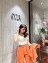 aika(GYDA)のTシャツ/カットソー「カップ付きハーフスリーブバッククロステレコTOPS」を使ったコーディネート