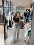 デートコーデ❤︎ 【ブラウス】サイドがオープンとバックスタイルがかわいいブラウスはサラッとした麻のような素材でキレイめ、カジュアルどちらの着こなしも可能です✨️ 【デニム】ベーシックデザインのフレアパンツは158cmの私でぺたんこ靴でも、着用可能でした!お尻ポケットにGGロゴが入っているのも推しポイントです。 【サンダル】毎年大人気のコルクサンダルが今年は今までとは違う太めのヒールになり登場しました✨️軽くてとても履き心地抜群です。23cmで足の幅狭めでSサイズ着用しています。