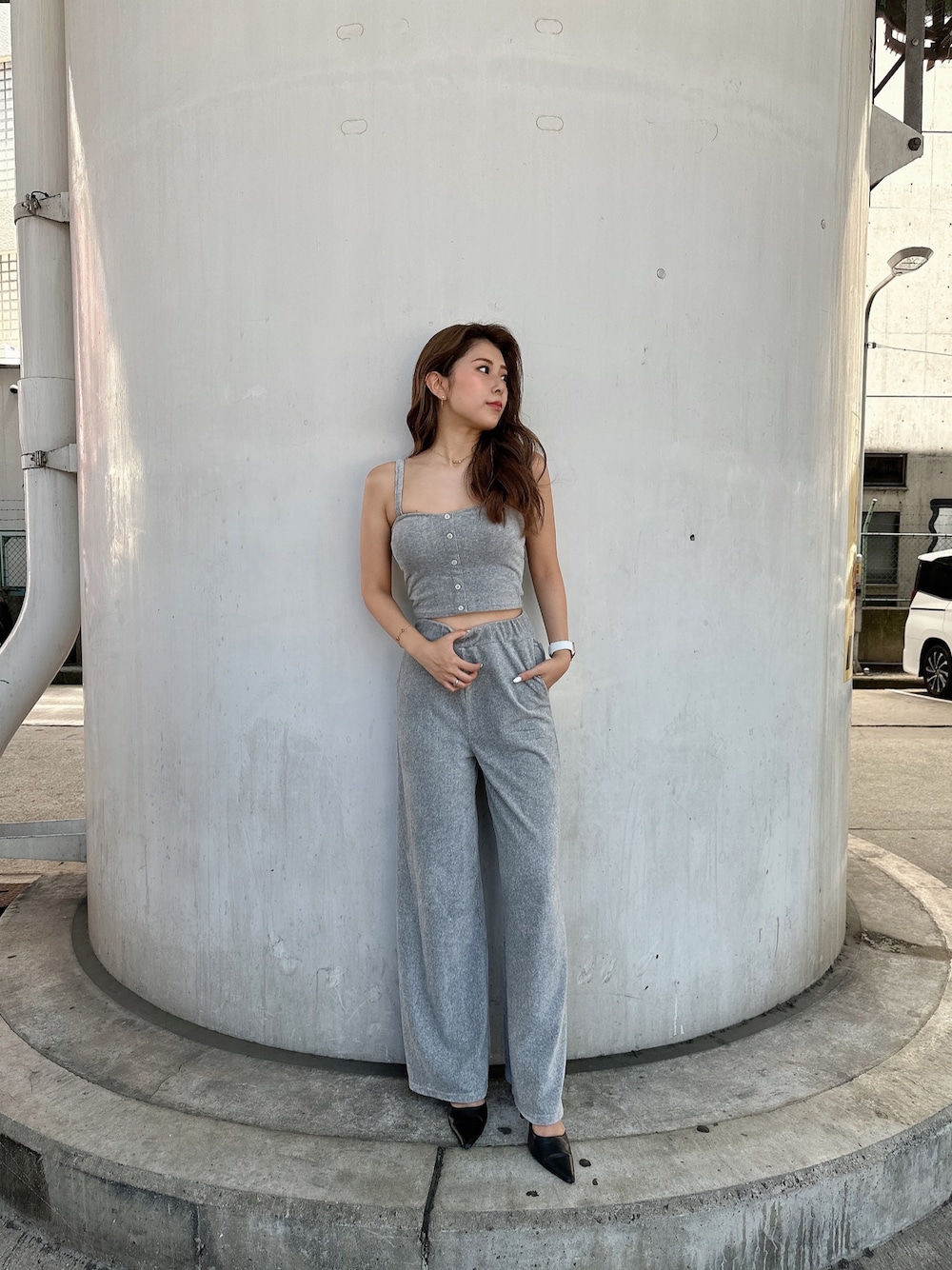 aika(GYDA)のキャミソール「【SET着用可】フロントボタンカットコーデュロイビスチェ」を使ったコーディネート