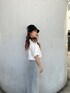 コーデュロイSETUP着回しコーデ♡ 【トップス】新作のロゴ刺繍のシンプルなTシャツです。デイリー使いしやすい丈感で袖も長いので二の腕カバーもできちゃいます✨️ロゴの刺繍のカラーがグレーっぽくとてもオシャレ度が増します! 【パンツ】コーデュロイ素材なので今の時期はTシャツ併せも可愛いですし秋はプルオーバーやシャツ合わせなどもオススメです✨️158cmの私はぺたんこ靴で少し擦りそうな丈感でした。 【シューズ】定番のポインテッドミュールはヒール9cmでヒールの付け根が太いので安定感抜群です。カジュアルから綺麗めと幅広いコーデで活躍間違いなしです!23cm幅狭めの足でSサイズ着用しています。 【バケットハット】秋まで使えるレザーのバケットハットが登場しました!GYDA ロゴの入ったプレートがフロントに付いておりシンプルなお洋服でも帽子を被るだけにお洒落になれます♡