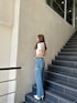 カジュアルコーデ❤︎ 【トップス】GGロゴのダブルファスナーがポイントのニットトップスは襟付きでトレンド感があり、丈感もボトムス選ばず着回しして頂きやすいです✨️伸縮性があり柔らかいニットなので着心地がとても良いです。 【デニム】珍しい太めのストレートパンツが登場しました♡綿100%なのでとても柔らかい素材で暑い夏でも楽に履いて頂けます!丈感は少し長く158cmで少し地面に擦るくらいでした。 【シューズ】GYDAで大人気のポインテッドミュール♡低反発クッションなので他のミュールと比べてもとても歩きやすい◎デニムやフレアパンツやロンパースなど幅広いコーデに活用出来るので重宝するアイテムの1つです! 23cm / Sサイズ着用♡