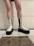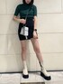 AWらしいミニスカート×ショートブーツのコーデ♡ ニットのシルエットはとてもシンプルですが、襟と袖部分がクラッシュになっていて、1枚でクールにオシャレに見せてくれます! スカートはインナーショーツ付きで、生地感も柔らかいので履き心地がいいです♩ ブーツはヒールが7cmもある厚底なのにとっても軽くて履きやすいです! 程よい厚底なのですが、しっかり美脚に見せてくれます♩