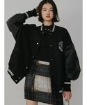 今期トレンドのバーシティージャケット♡ 袖と身頃が生地違いでおしゃれに見せてくれます! 袖のフェイクレザーがかっこいいデザインです♪ 軽くて羽織りやすく、オーバーサイズなので中にもしっかり着込めるので真冬にも使えそうなアイテムです♡ トレンド感のあるプリーツスカートはエモダならではの切っぱなしデザイン♡ タイトめなデザインなので裾が広がりすぎずお尻周りをスッキリ見せられます! ロングブーツはずっと狙っていたレースアップデザイン♡ 脚周りはレースアップできつく引き締めたりゆるめに履いたり調整できるのが嬉しいポイントです♩ もともと厚底なのにプラスでインヒールなので身長も盛れるし膝下が長く見えるので美脚に見せられます♡