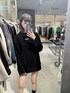 【春にも使えるオールブラックコーデ】 ロゴデザインが可愛いニット❤︎ モコモコした生地感ではなくサラッとしたニットなので春先に着ても暑苦しく見えないです! 毛玉にもなりにくい生地なのでたくさん使えそう♩ 身長163cmの私が着てもお尻まで隠れる丈感で、腕周りはボリュームが抑えめなので小柄な方でも着ていただけます! ブーツは毎日愛用しているサイドゴアブーツ❤︎ スニーカー感覚で楽に履けるのにしっかり美脚見せしてくれる最強のブーツです!