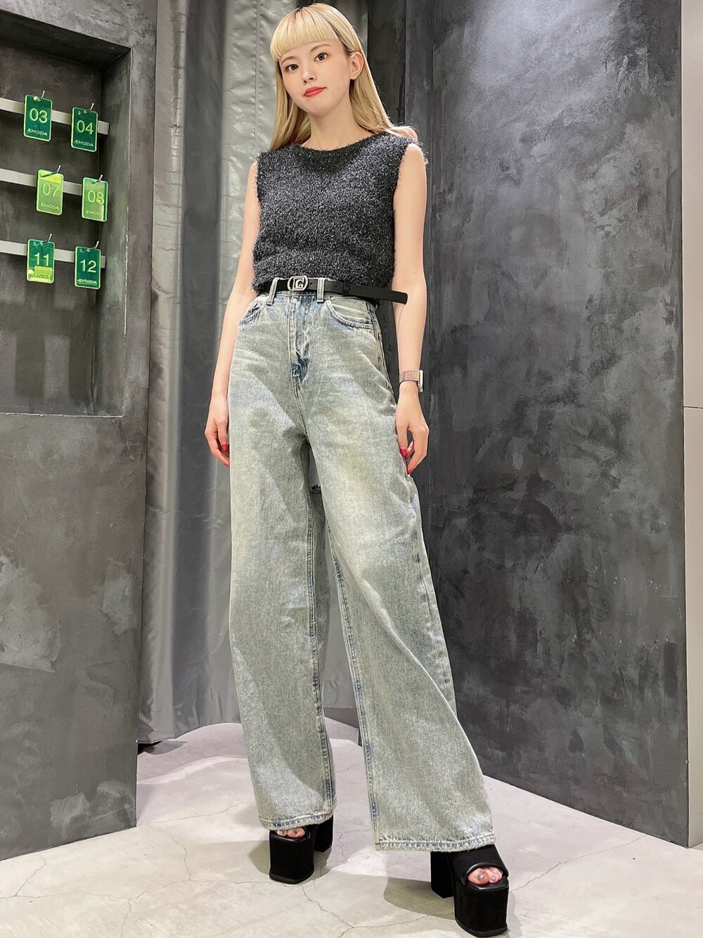 奥野由樹(EMODA)のデニムパンツ「バックカットルーズジーンズ」を使ったコーディネート