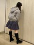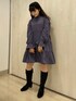 ◌ミニワンピ×二ーブーツ◌ミニ丈がお好きな方におすすめのコーディネートです♡ふわっとしたシルエットのワンピースはひざ上丈のミニワンピース。ウエストより上に切り替え線があるので脚長効果に!また胸元にチャイナボタンが付いているので更に視線を上にもってくることが出来ます!生地が桃の皮のような柔らかくなめらかなピーチ素材で冬らしさを演出◎寒色系のワンピースに合わせてアイスブルーのジャケットで防寒対策!雨風に強いナイロン生地のジャケットを合わせてコロンと可愛らしい印象に♡二ーブーツはベロア生地にフリルを装飾した冬らしい1足。高すぎない4cmヒールなので歩きやすくヒール慣れしていない方にもおすすめです♡小物はブラックで合わせてコーデが締まるようにしました♡